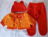 1 casaquinho em Tricô lã vermelho e amarelo.