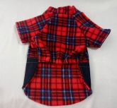 Camisa confeccionada em tecido xadrez, com detalhes em tecido jeans, com bolsinhos, com alças.