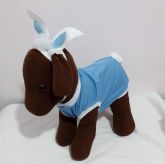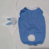 Roupa Coelhinho da Páscoa, confeccionada em malha de verão na cor AZUL, com detalhe em branco na barriguinha e nas costas como se fosse o rabinho do coelho. Roupa leve e confortável. Acompanha acessório para cabeça com 2 orelhinhas de coelho.